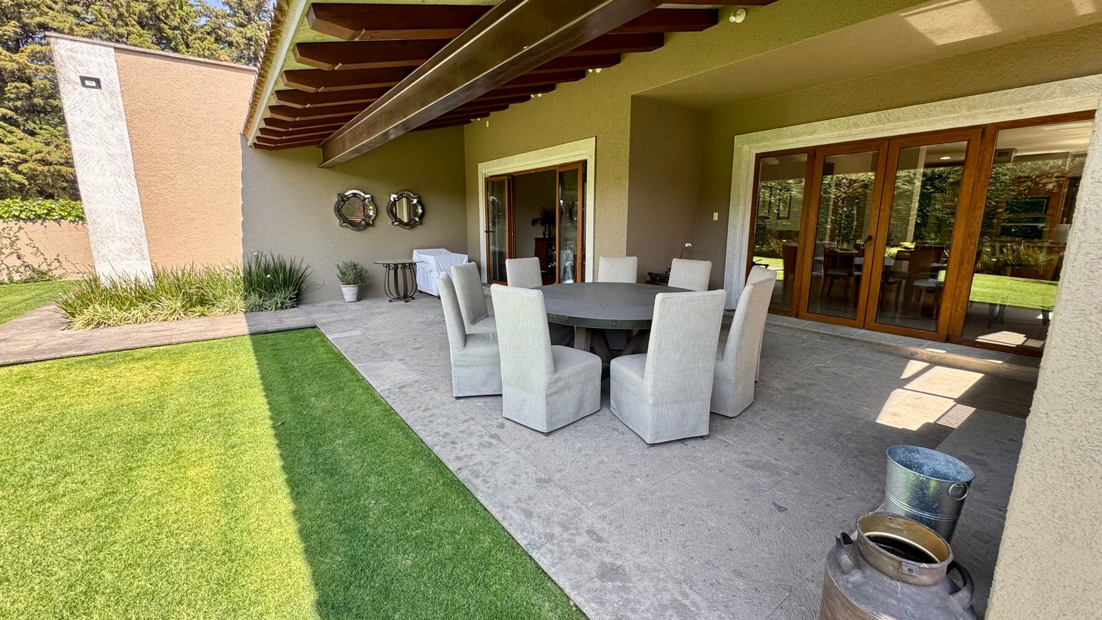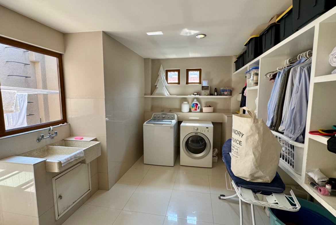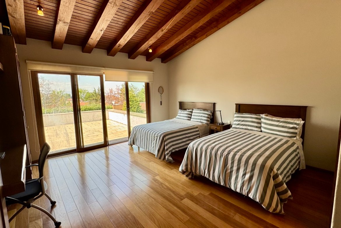 La terraza con jardín ofrece un espacio ideal para reuniones sociales, comidas al aire libre o momentos de descanso en un entorno verde y privado. Además, dispone de cuarto de servicio, área de lavado y cuatro estacionamientos, completando una casa diseñada para adaptarse a las distintas etapas de vida.