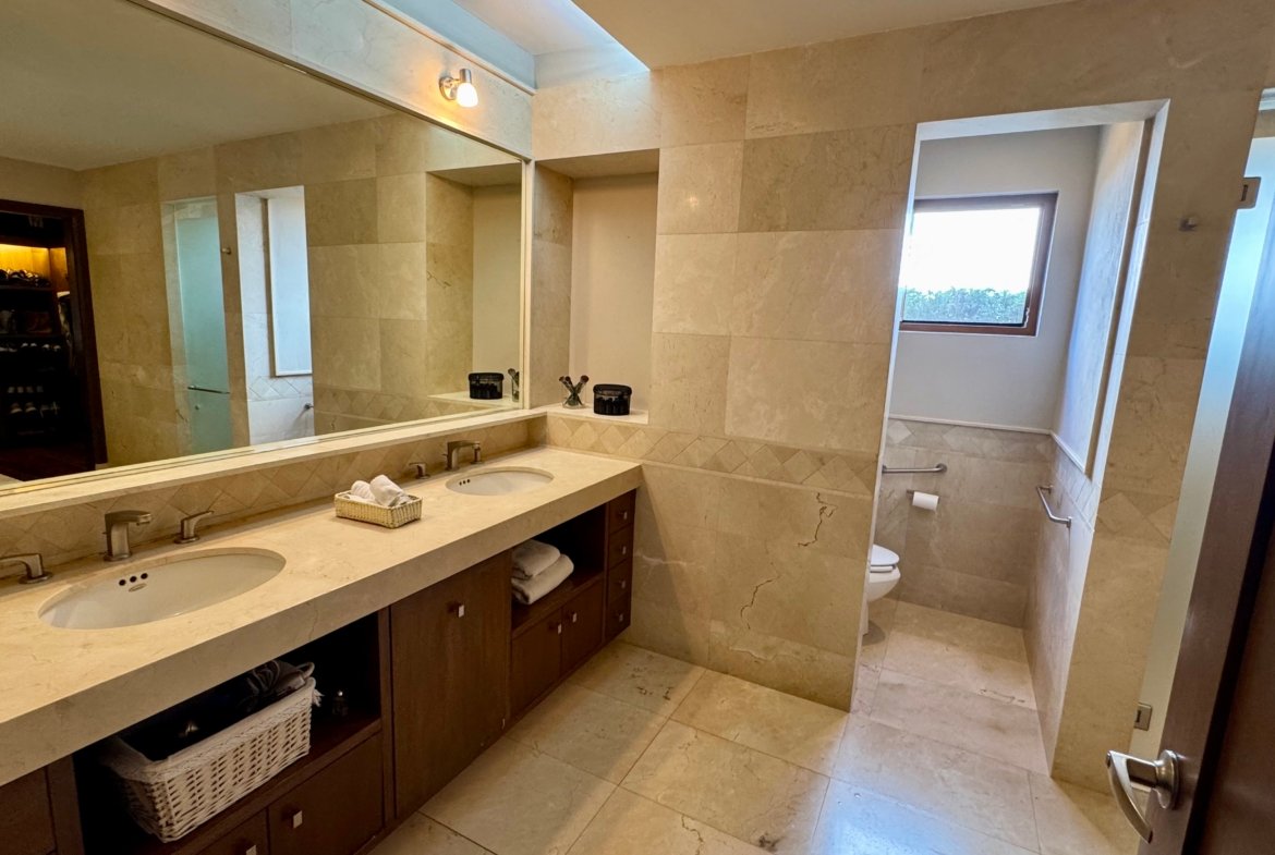 Cuenta con tres recámaras, dos áreas de family room, y una cocina amplia con isla central que se convierte en el corazón funcional de la casa. Sus seis baños aportan comodidad y practicidad tanto para residentes como para visitas.