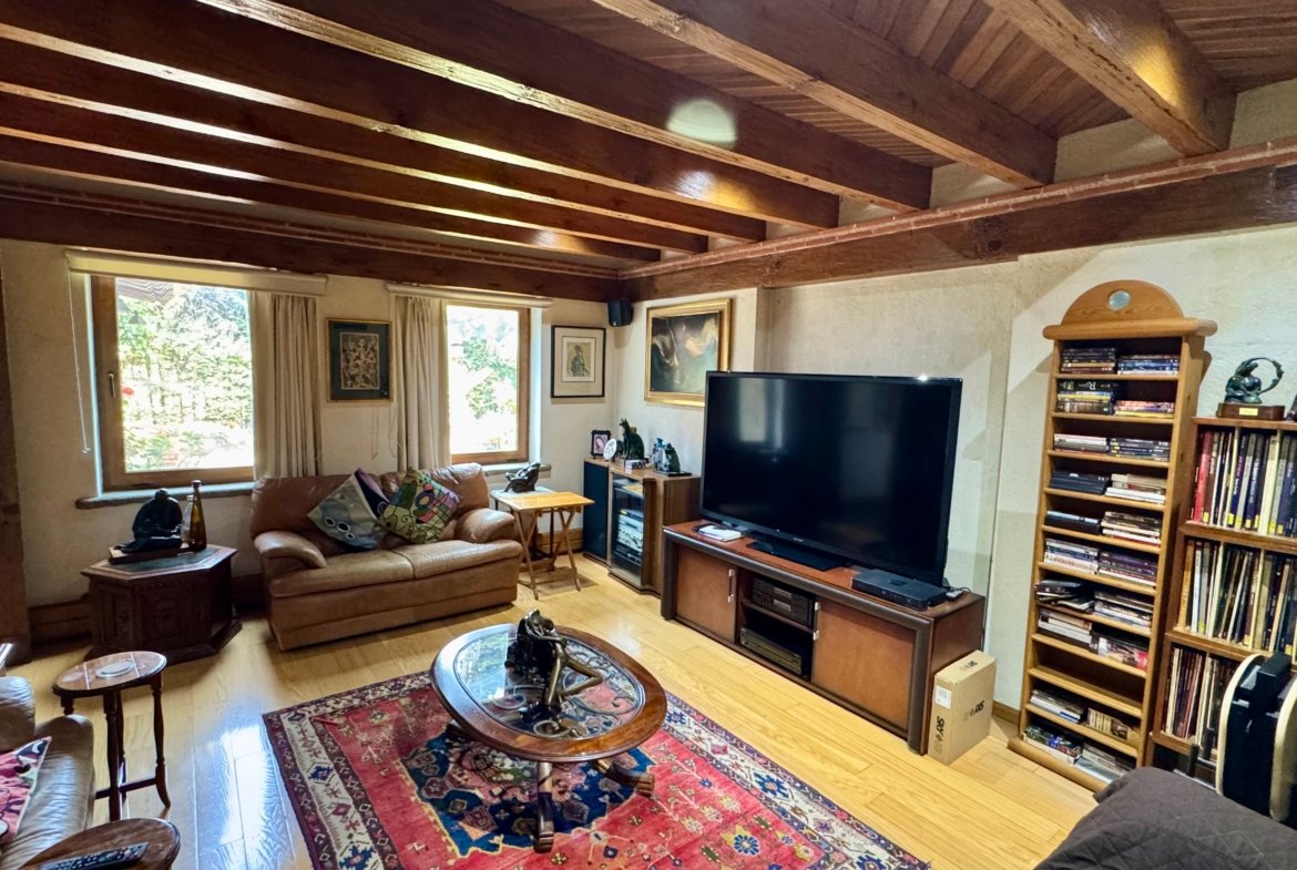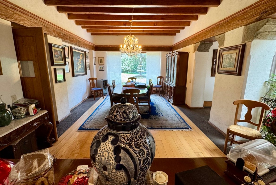 Al ingresar, los espacios transmiten elegancia y tradición: una amplia sala con chimenea y doble altura, comedor con área de desayuno y múltiples zonas de convivencia que permiten reuniones formales o familiares con total comodidad. El estudio y biblioteca crean un ambiente único, ideal para lectura, trabajo o contemplación, aportando personalidad y carácter a la casa.