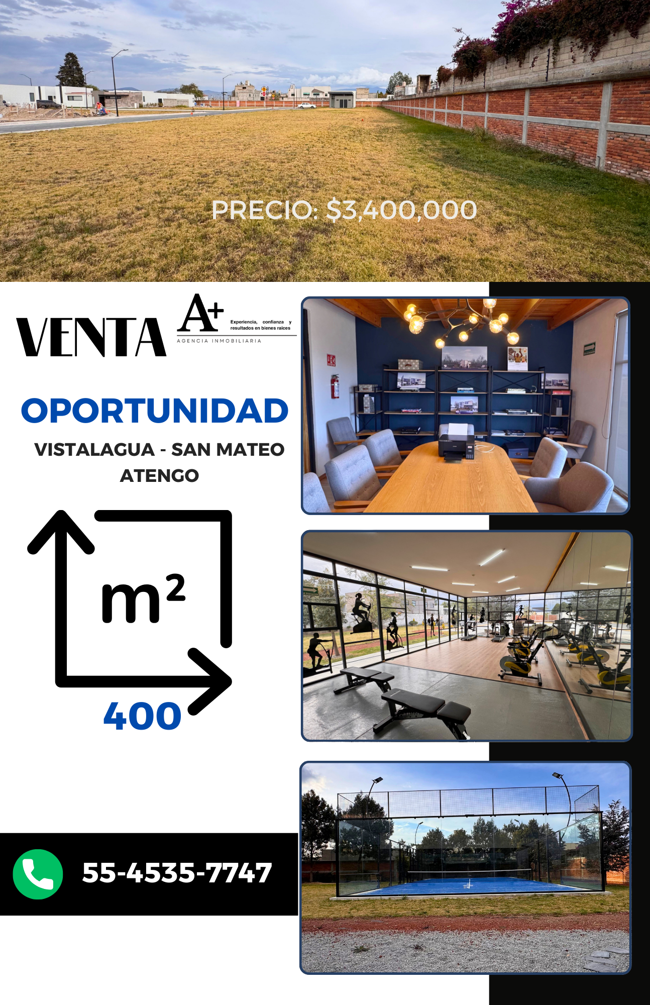 Con 400 m² de superficie y frente a vialidad interna, el lote ofrece una excelente orientación y proporciones ideales para desarrollar una residencia amplia con jardín, terraza y áreas sociales bien integradas.